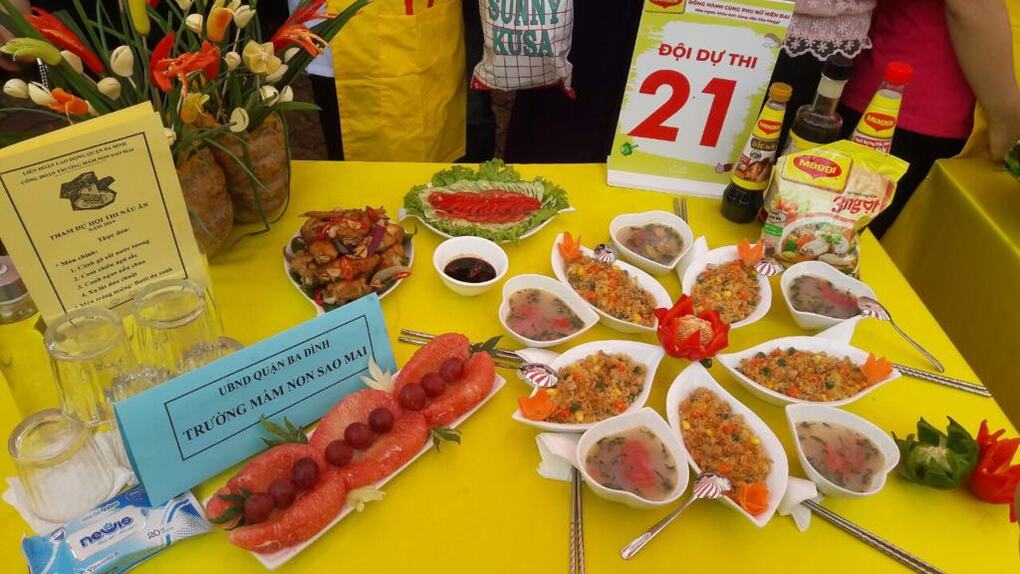 Tham dự Hội thi đến từ tổ công đoàn các Nhà trường. Với chủ đề “Bữa ăn gia đình”, sau 60 phút trổ tài dưới những bàn tay khéo léo, sáng tạo mâm cơm gia đình mang đậm nét truyền thống trưng bày không chỉ đa dạng về món ăn, đẹp về thẩm mỹ, ngon về chất lượng mà còn đảm bảo vệ sinh an toàn thực phẩm. Các mâm cơm dù phong phú, đa dạng với rất nhiều món ăn khác nhau nhưng đều đủ chất dinh dưỡng cần thiết, cân đối nhóm thức ăn giàu chất đạm, chất béo, chất bột, vitamin và khoáng chất.