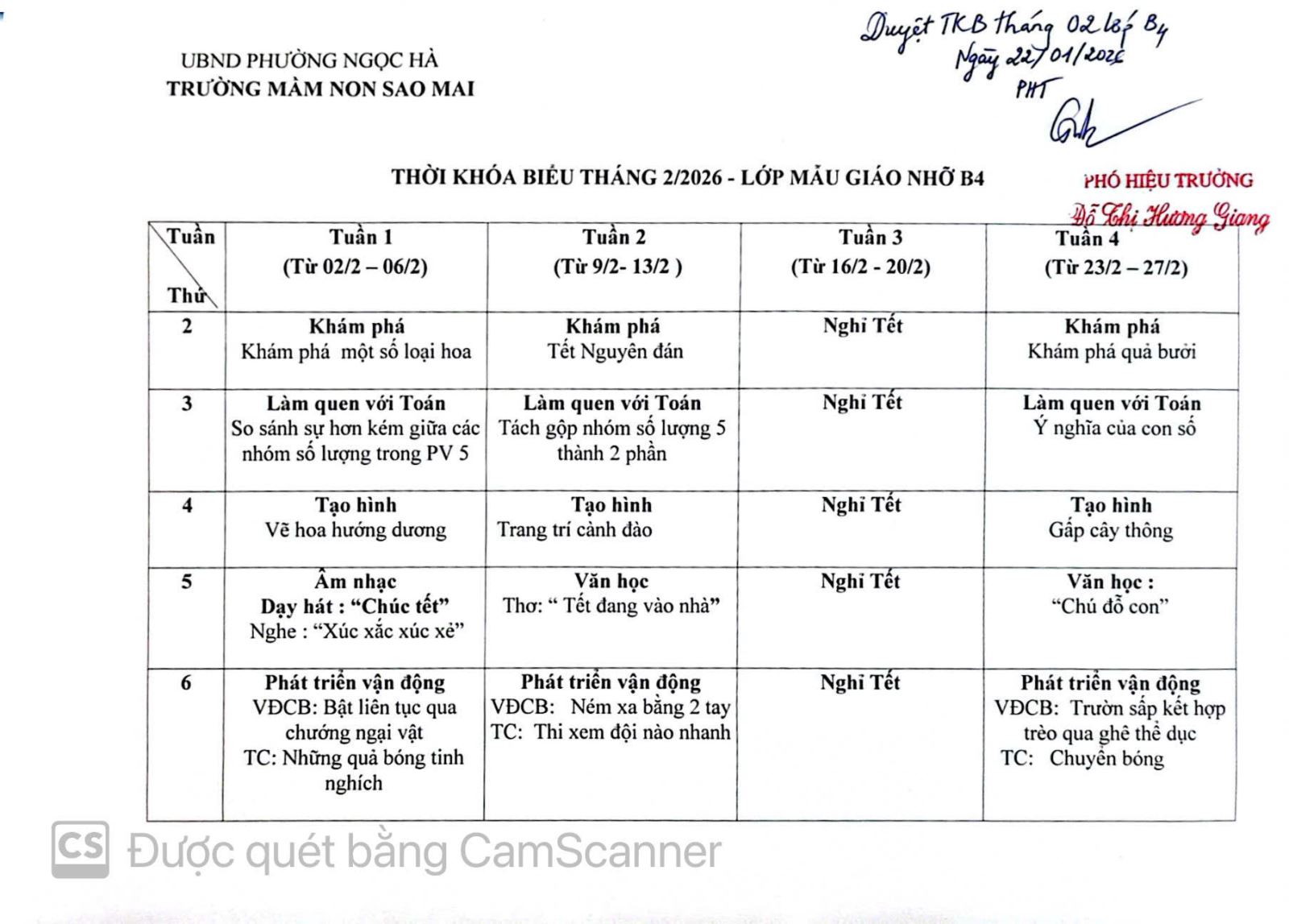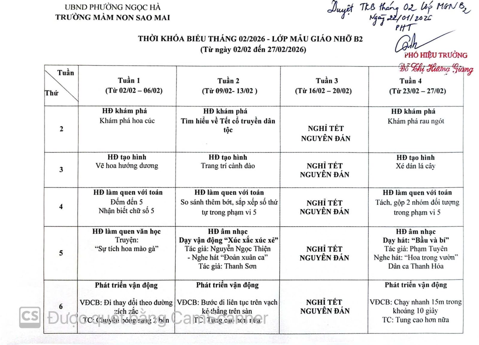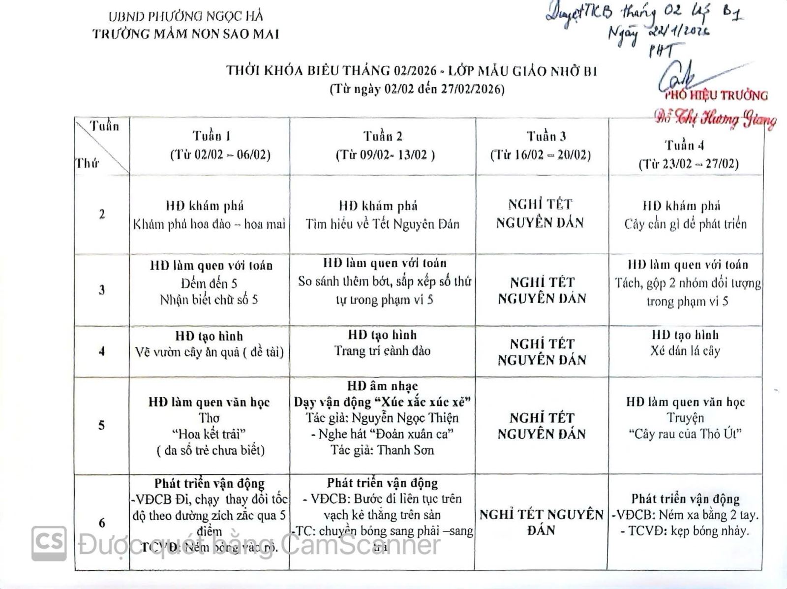 Trường Mầm non Sao Mai kính gửi quý CMHS Thời khóa biểu tháng 02/2026 - Khối Mẫu giáo nhỡ