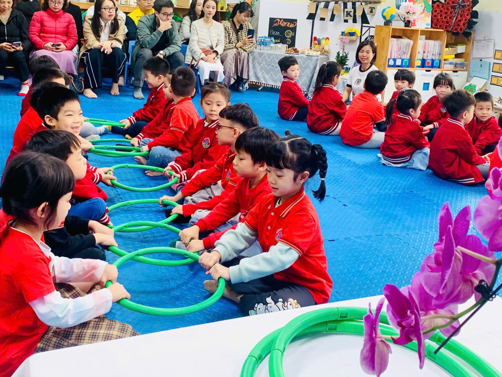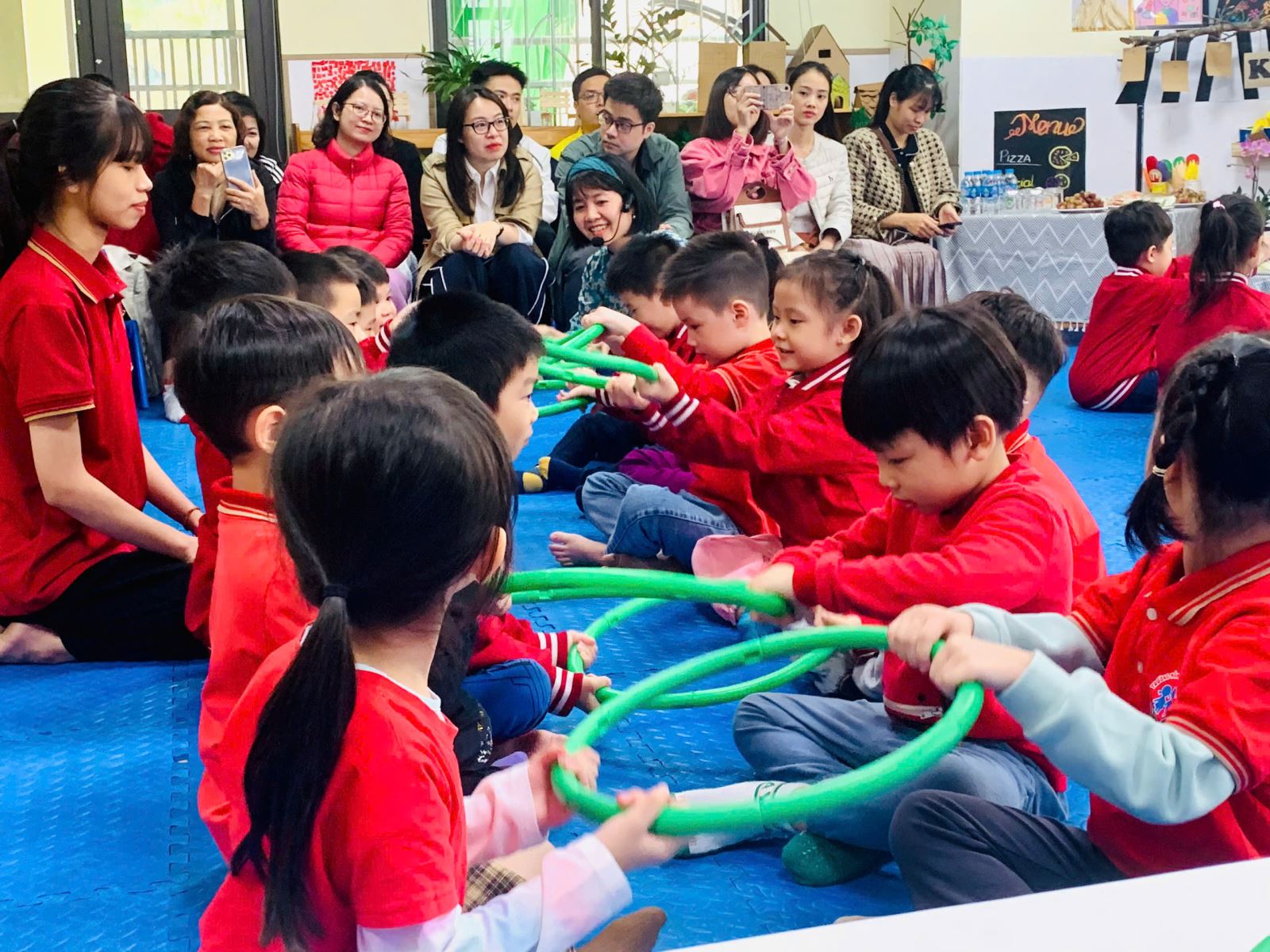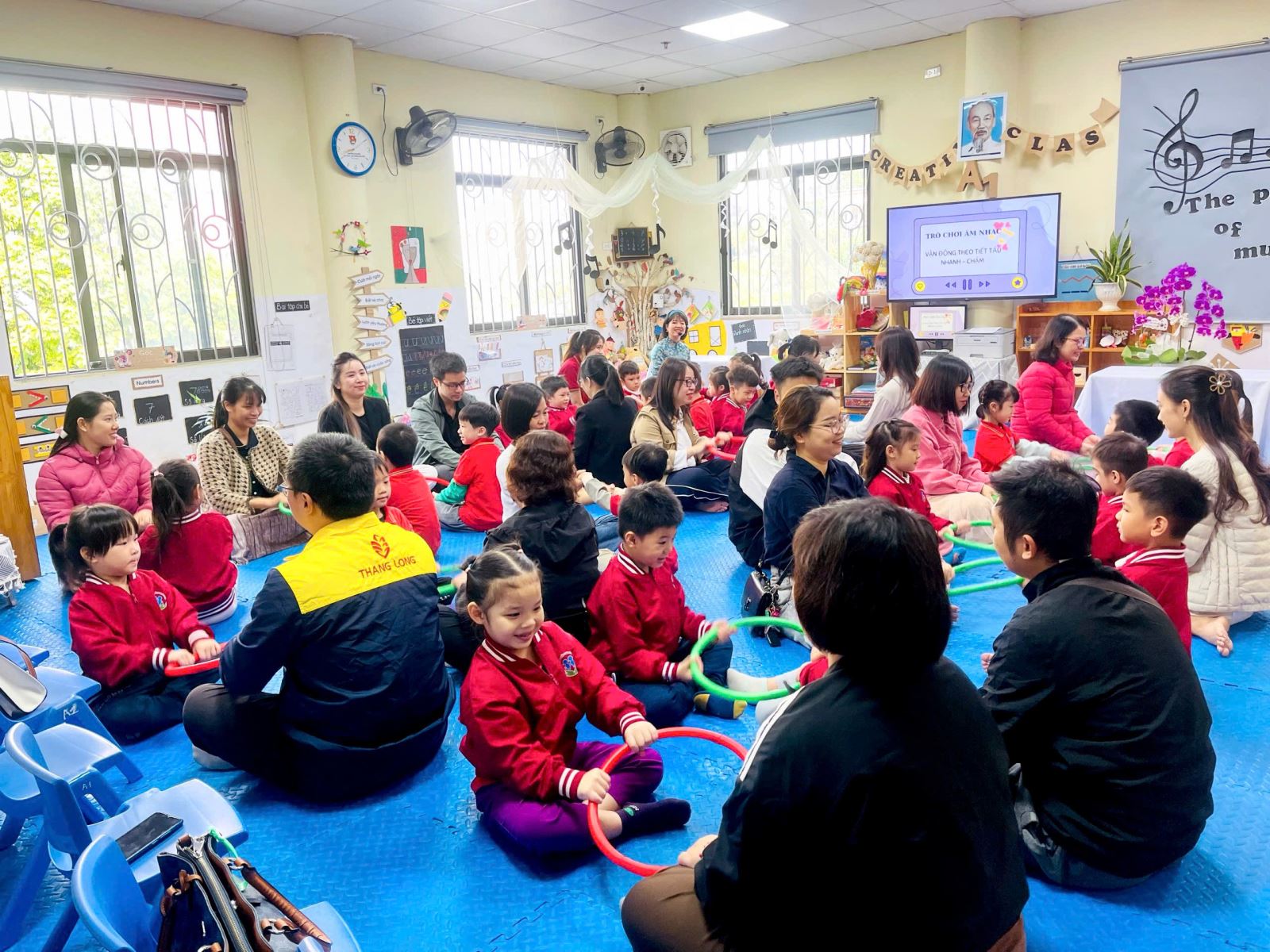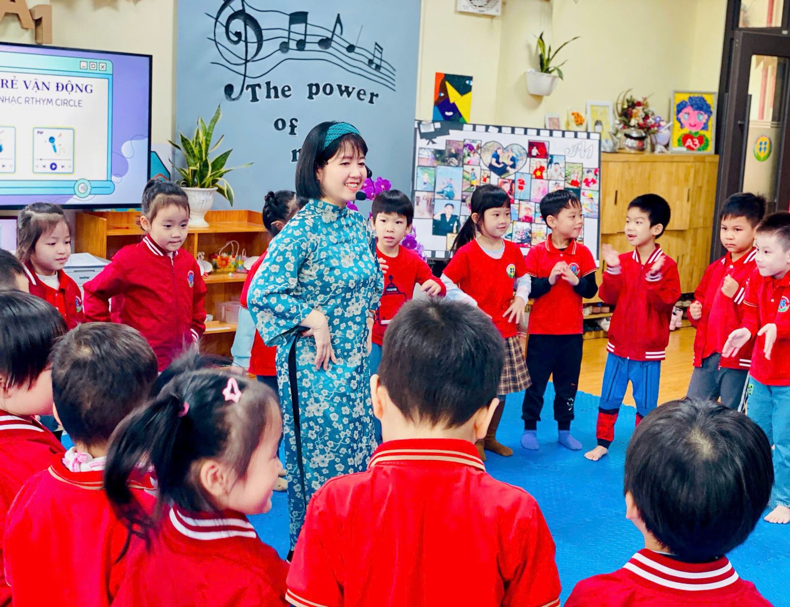 Hiểu được vai trò và tầm quan trọng của âm nhạc đối với trẻ đặc biệt trong thời kỳ hội nhập quốc tế, cô giáo Nguyễn Thùy Dung- giáo viên lớp mẫu giáo lớn A1 đã lựa chọn hoạt động âm nhạc với đề tài" Vận động theo nhạc Rthym circle" làm hoạt động kết nối cha mẹ học sinh