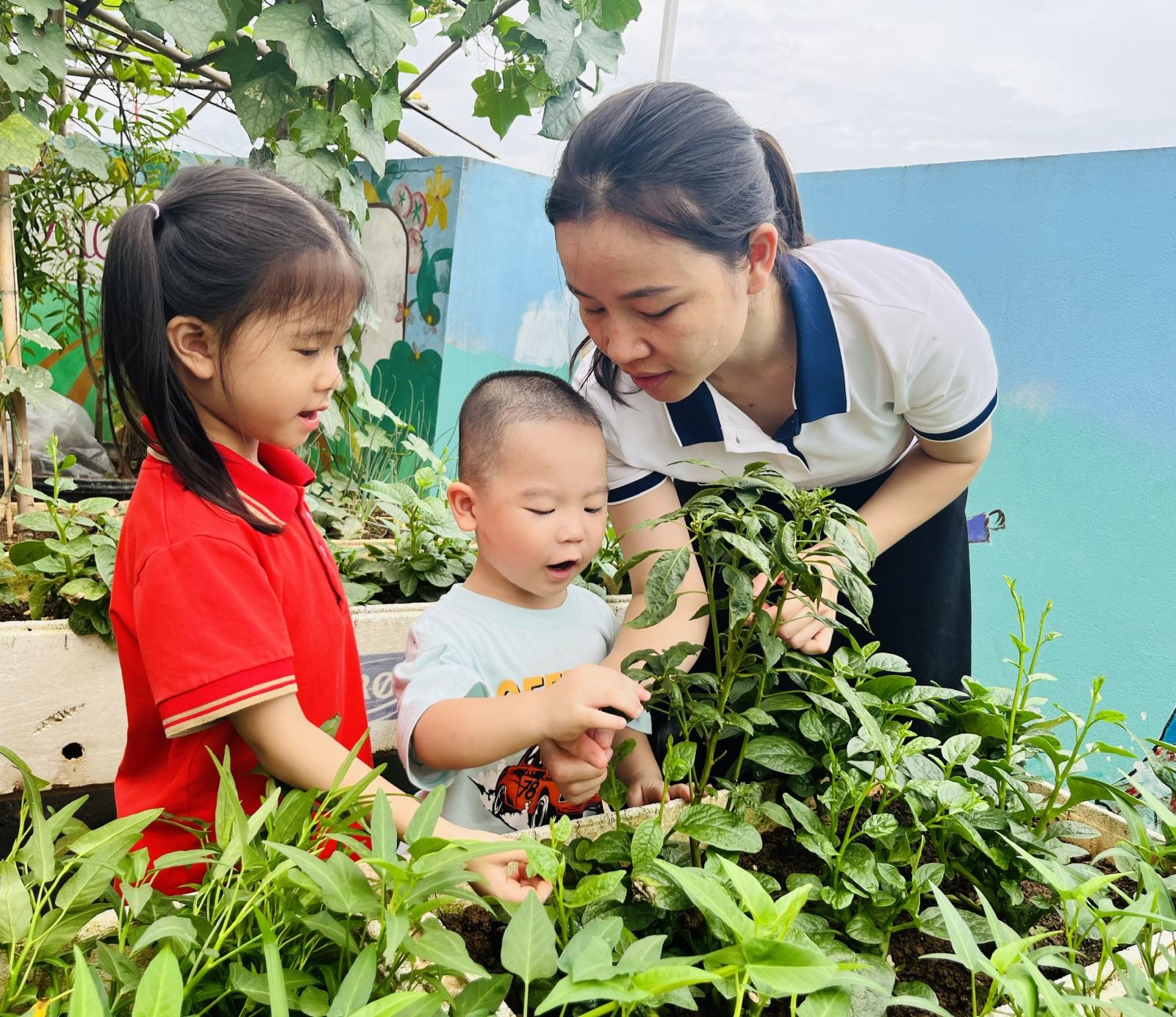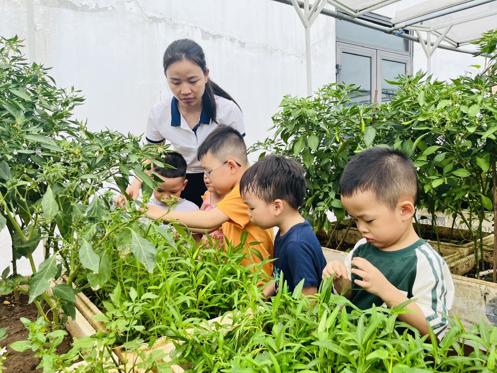 Hoạt động không chỉ giúp trẻ rèn luyện kỹ năng chăm sóc cây trồng, tăng cường vận động ngoài trời mà còn bồi dưỡng tình yêu thiên nhiên, ý thức bảo vệ môi trường ngay từ những điều nhỏ nhất. Bên cạnh đó, niềm vui háo hức khi thấy từng luống rau lớn lên mỗi ngày cũng là bài học quý giá về sự kiên nhẫn và trân trọng công sức lao động.