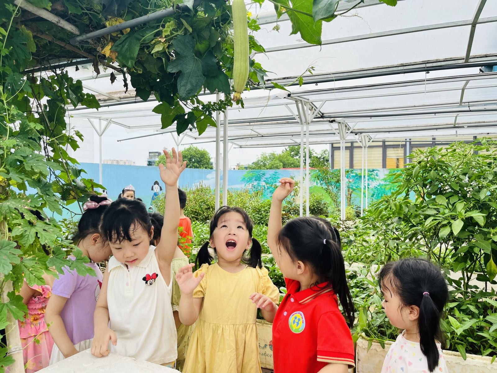 Được hoà mình vào không gian xanh tươi của vườn rau vào những buổi sáng hè dịu mát, các bé được cô giáo hướng dẫn cách nhận biết các loại rau mùa hè như rau mồng tơi, rau dền, mướp, rau muống… Các con hào hứng tự tay xới đất, nhổ cỏ, bắt sâu và tưới nước cho những luống rau thêm xanh tốt.