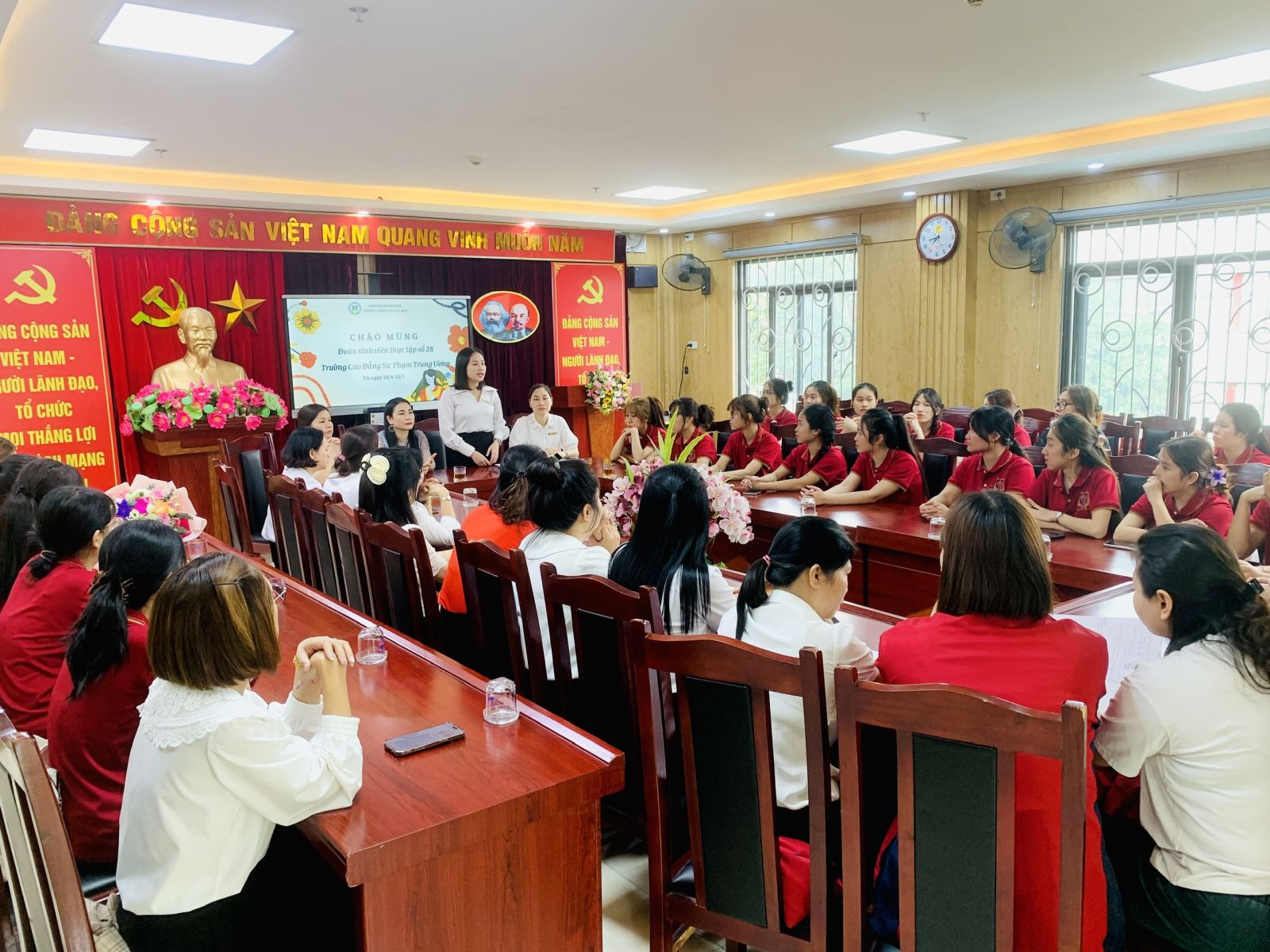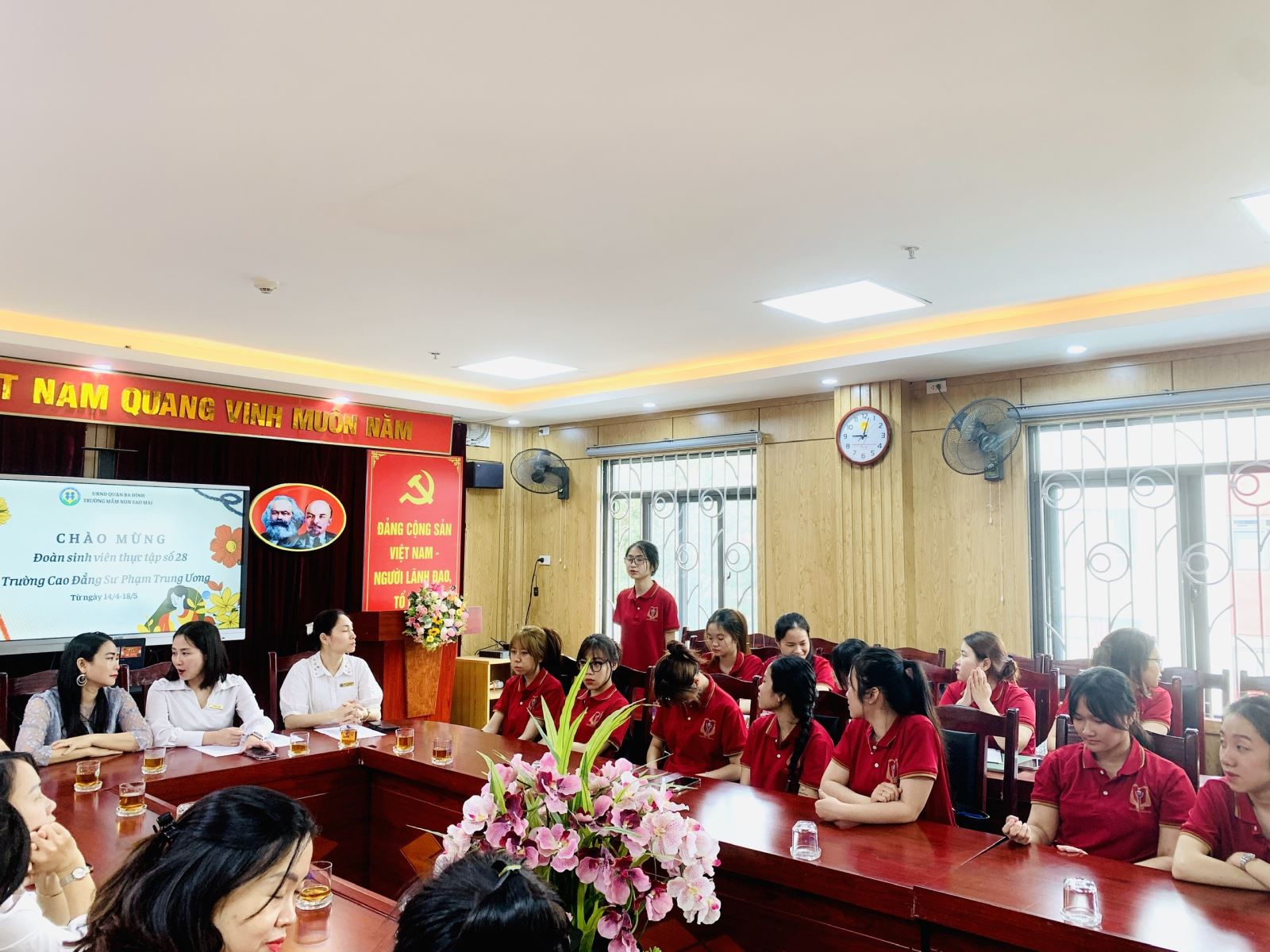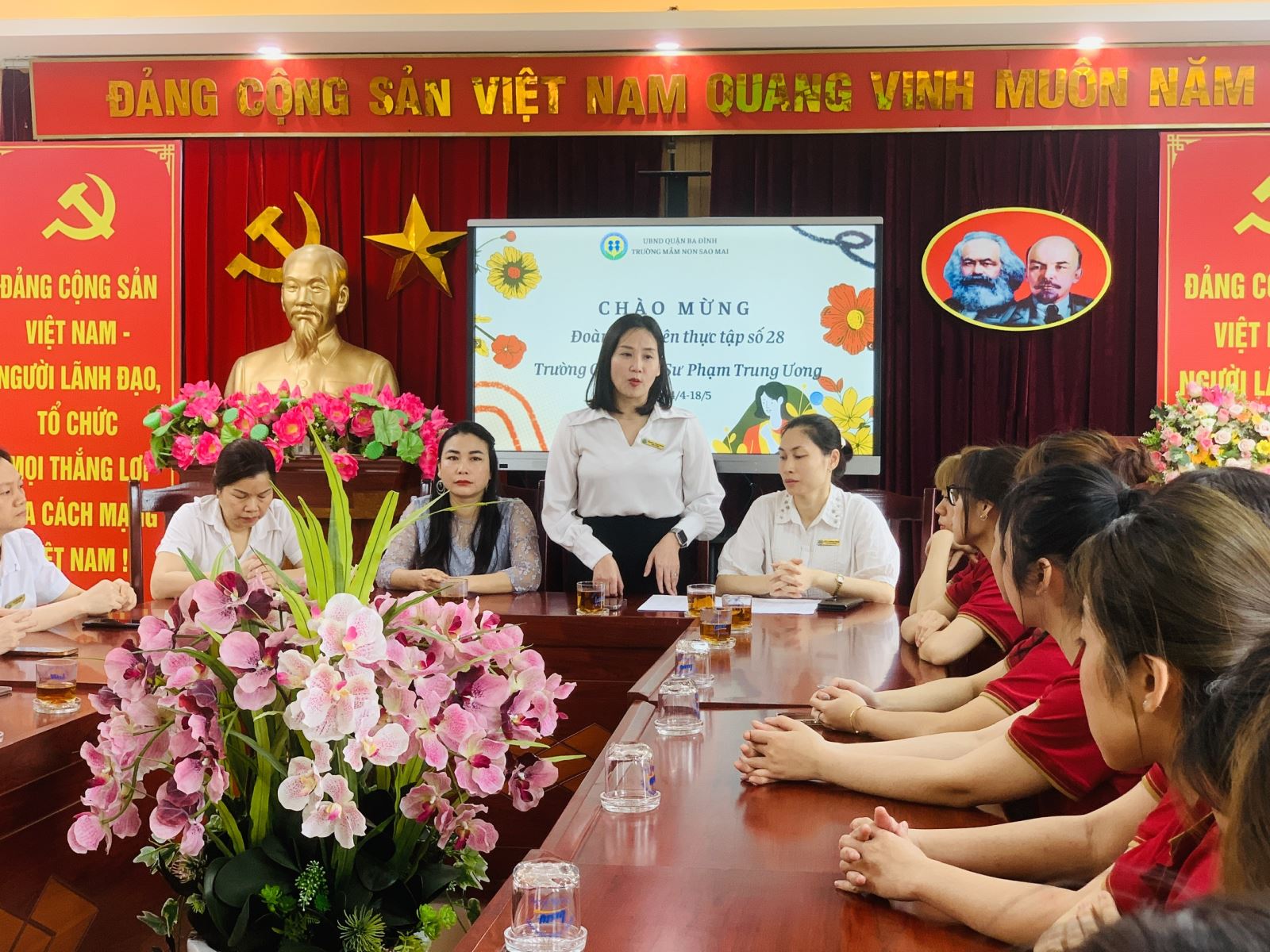 Tham dự buổi gặp mặt, về phía nhà trường có cô giáo Nguyễn Thị Thanh Hương – Bí thư chi bộ- Hiệu trưởng nhà trường, cô Nguyễn Thị Ánh Nguyệt, cô Đỗ Thị Hương Giang – Phó hiệu trưởng nhà trường và đại diện các cô giáo hướng dẫn thực tập Sư phạm. Về phía trường Cao đẳng Sư phạm Trung ương có cô giáo Bùi Thị Hồng Hải cùng 26 sinh viên lớp K28 sẽ là những giáo sinh thực tập tại trường Mầm non Sao Mai.
