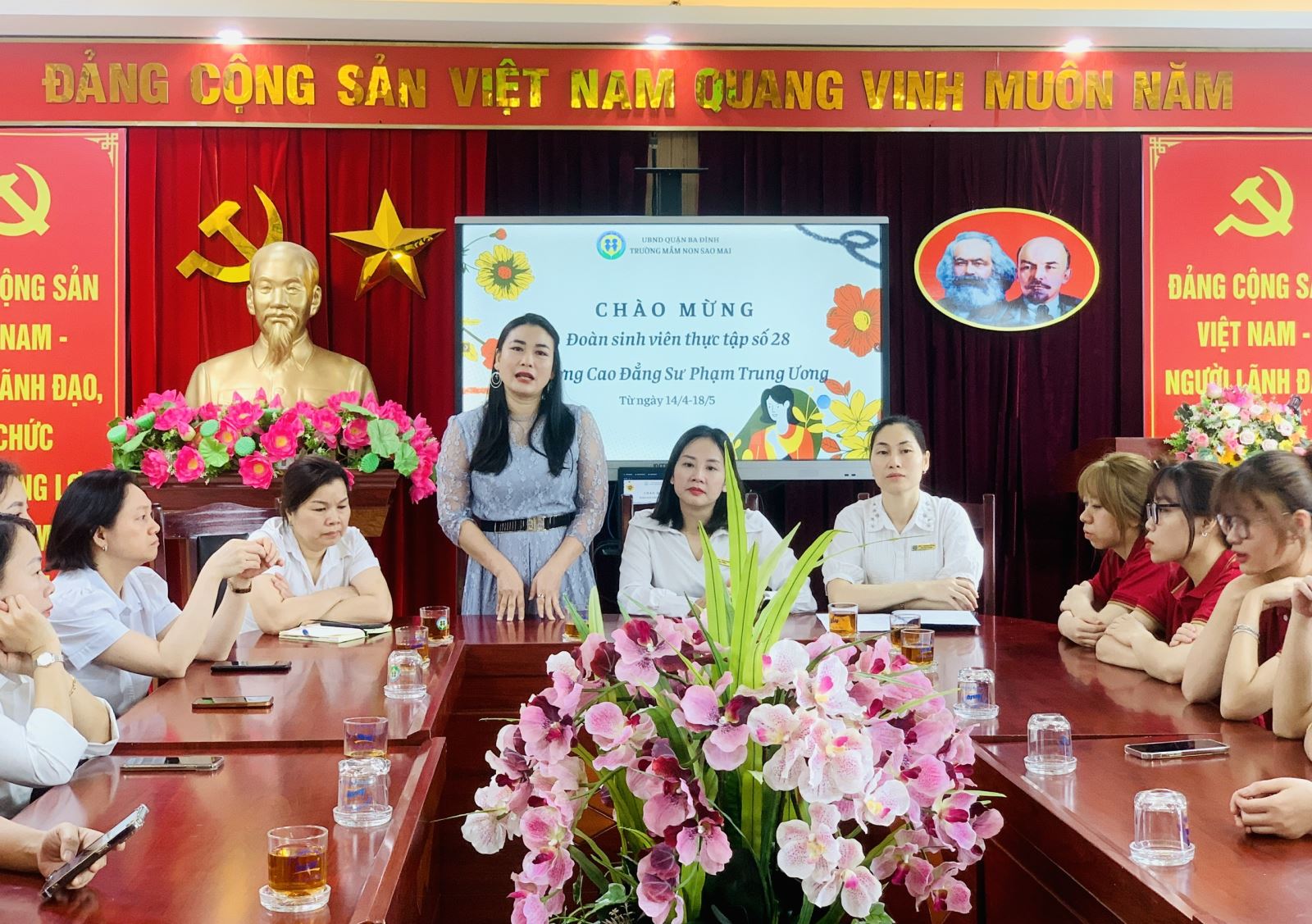 Sáng ngày 14/04/2025, Trường Mầm non Sao Mai vui mừng chào đón đoàn sinh viên thực tập K28 đến từ Trường Cao đẳng sư phạm Trung ương