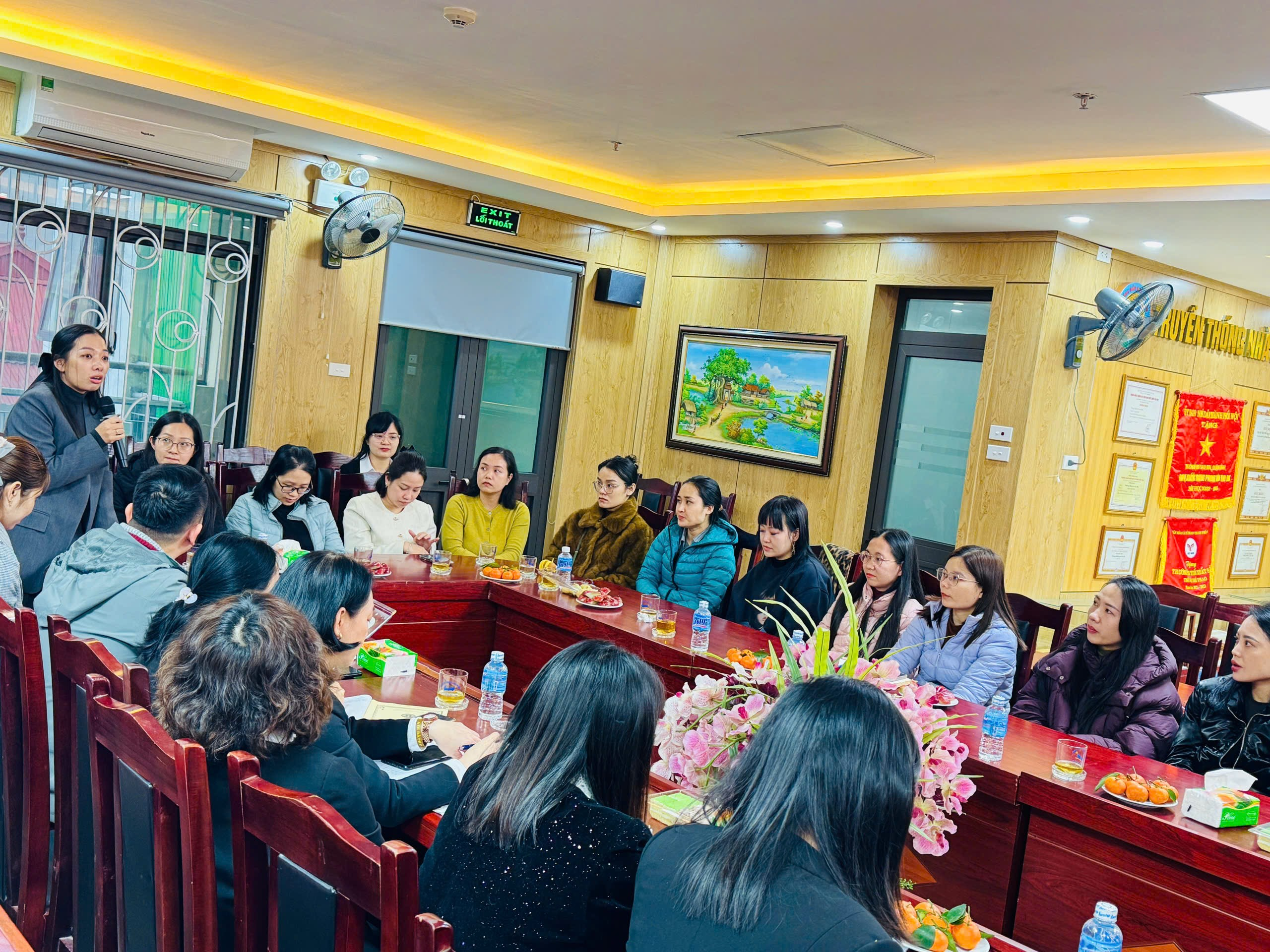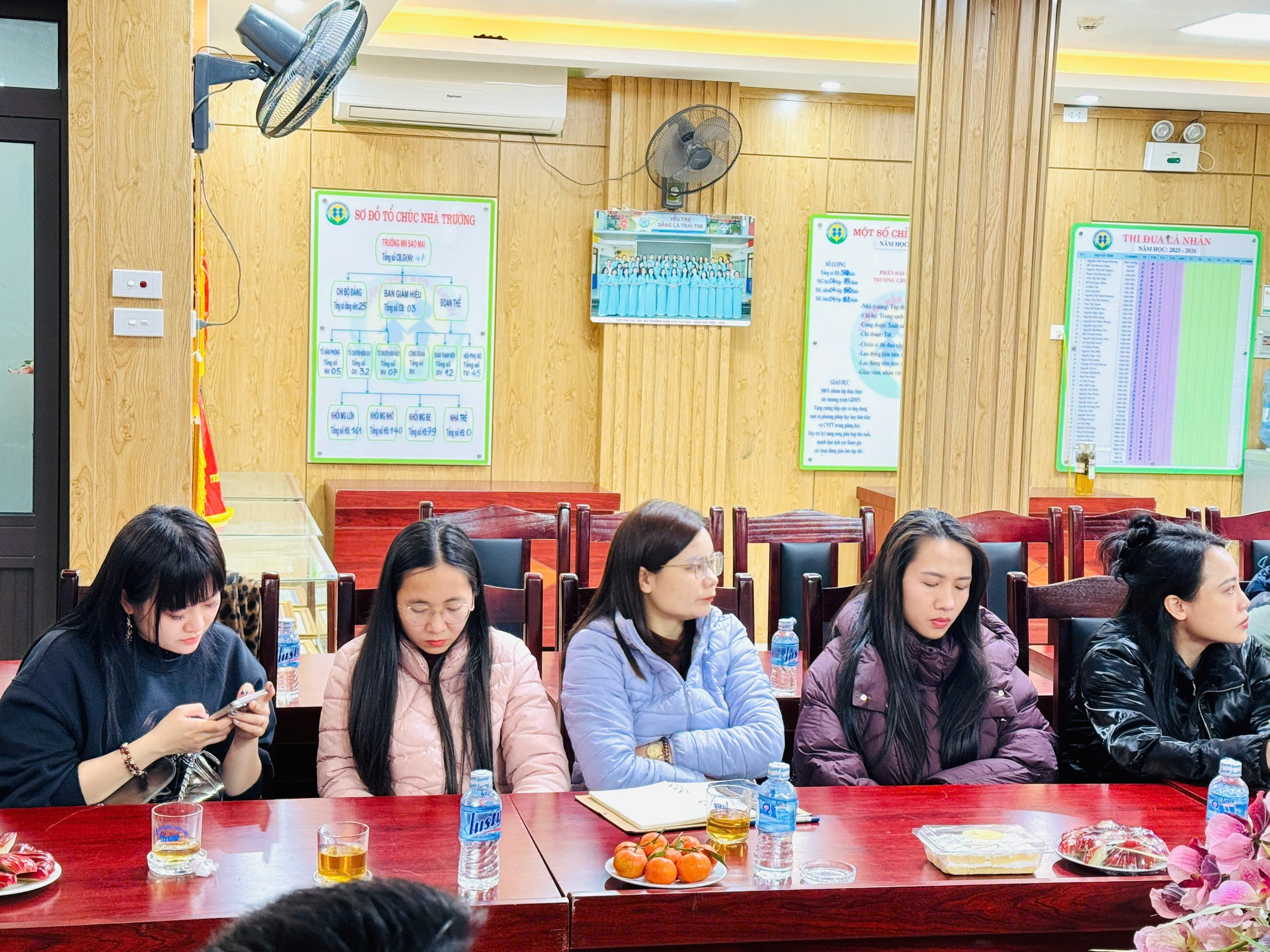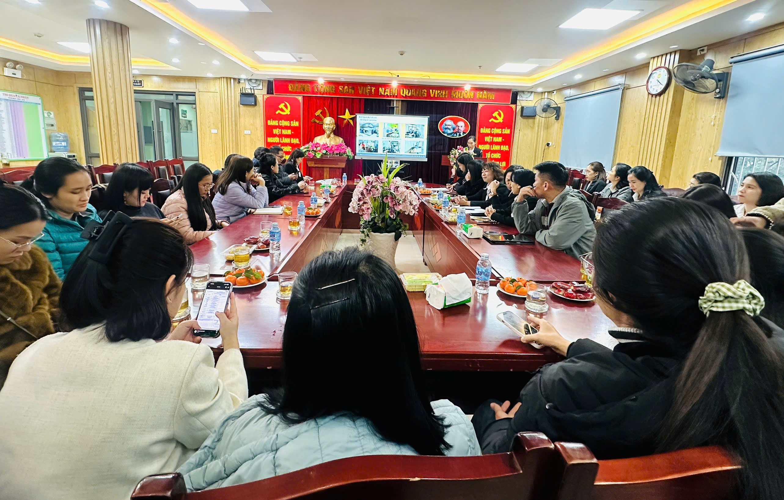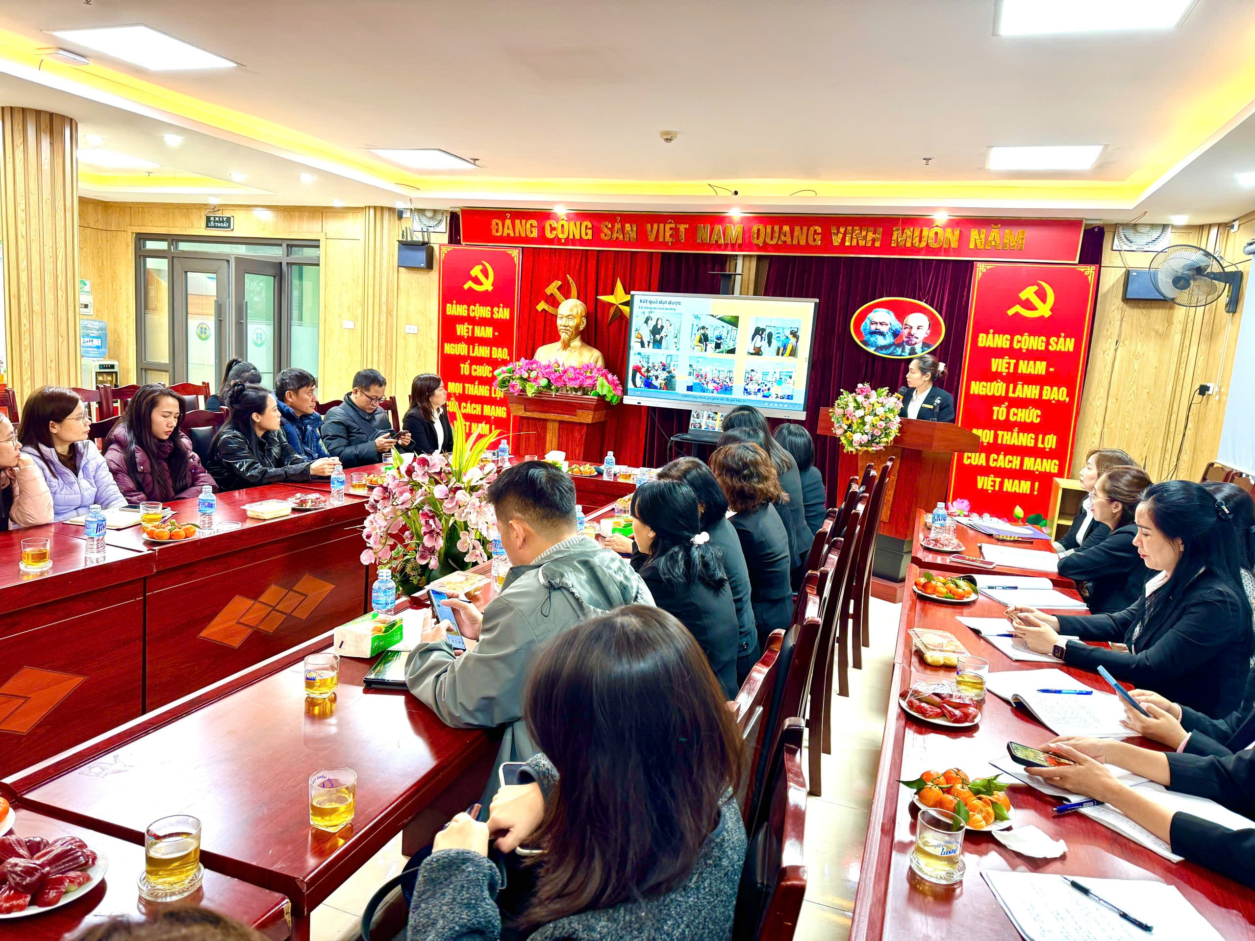 Tiếp theo, cô Đỗ Thị Hương Giang - Phó Bí thư Chi bộ, Phó Hiệu trưởng nhà trường đã trình bày Báo cáo sơ kết học kỳ I năm học 2025-2026. Báo cáo đã nêu rõ những kết quả đạt được trong các lĩnh vực: công tác quản lý, chất lượng chăm sóc – giáo dục học sinh, nền nếp chuyên môn, các phong trào thi đua cũng như những thuận lợi và khó khăn trong quá trình thực hiện nhiệm vụ. Đồng thời, báo cáo cũng thẳng thắn chỉ ra một số tồn tại, hạn chế cần khắc phục trong thời gian tới.