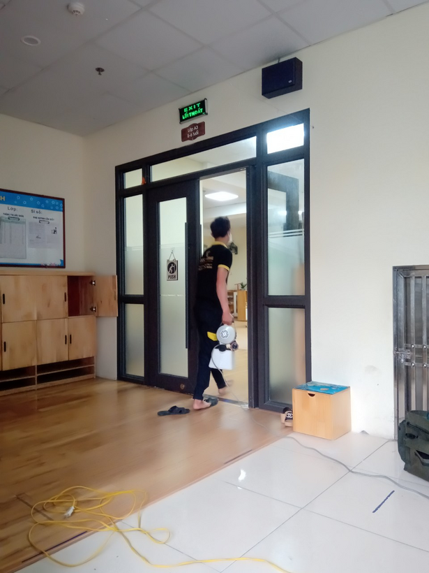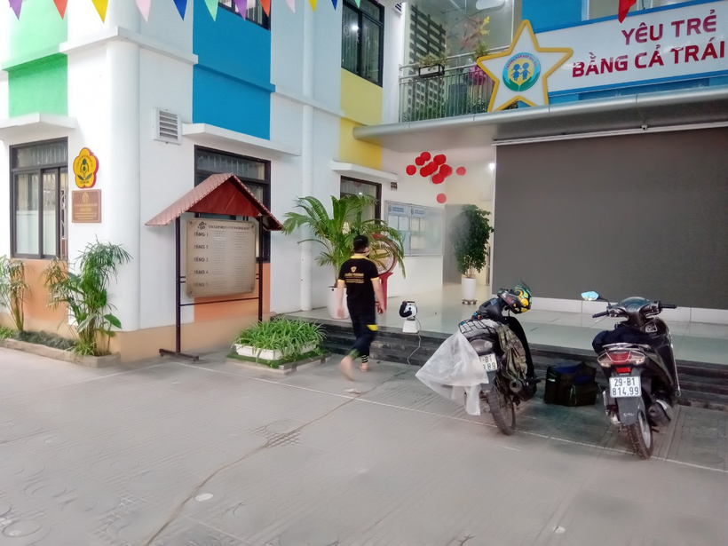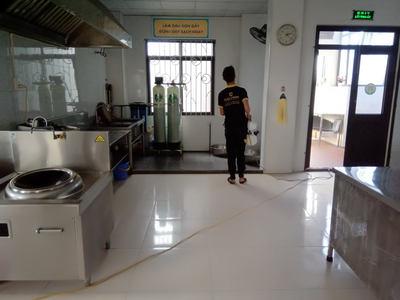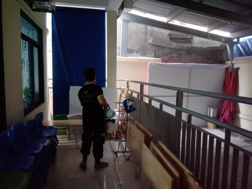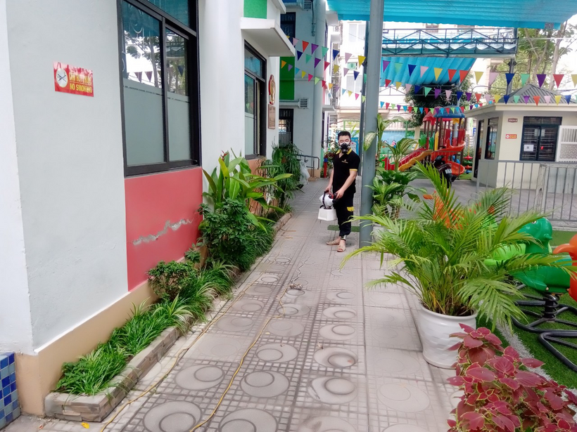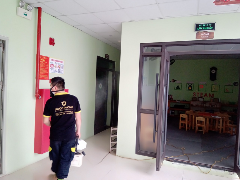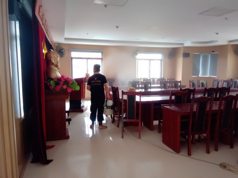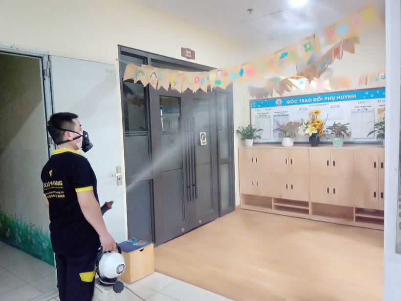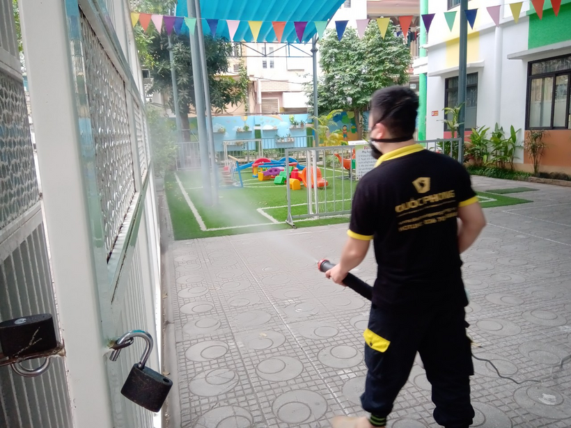 Một số hình ảnh nhân viên y tế phường Vĩnh Phúc phun thuốc muỗi tại trường
