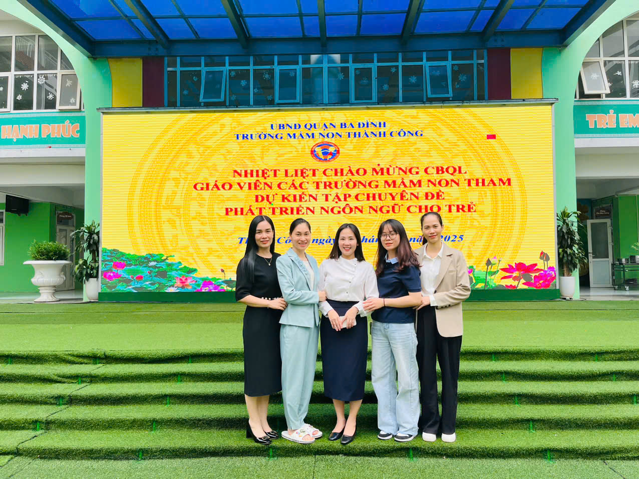 Là đơn vị đăng cai, Trường Mầm non Thành Công đã chuẩn bị chu đáo các điều kiện và bảo đảm an toàn các khâu. Không gian lớp học được bố trí khoa học, các góc hoạt động được thiết kế hợp lý với nhiều tư liệu, hình ảnh, vật liệu mở... tạo điều kiện cho trẻ phát triển ngôn ngữ một cách tự nhiên, qua tương tác và trải nghiệm. Hiệu trưởng Trường Mầm non Thành Công Phùng Thị Bích Hiền chia sẻ, thông qua chuyên đề, đội ngũ giáo viên của nhà trường có cơ hội học hỏi, chia sẻ kinh nghiệm với các trường bạn trong việc tổ chức các hoạt động nâng cao chất lượng chăm sóc, nuôi dưỡng, giáo dục trẻ.