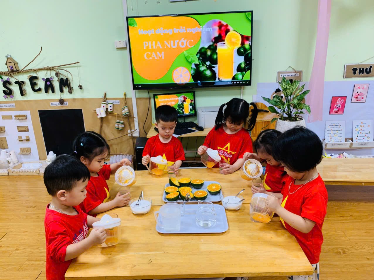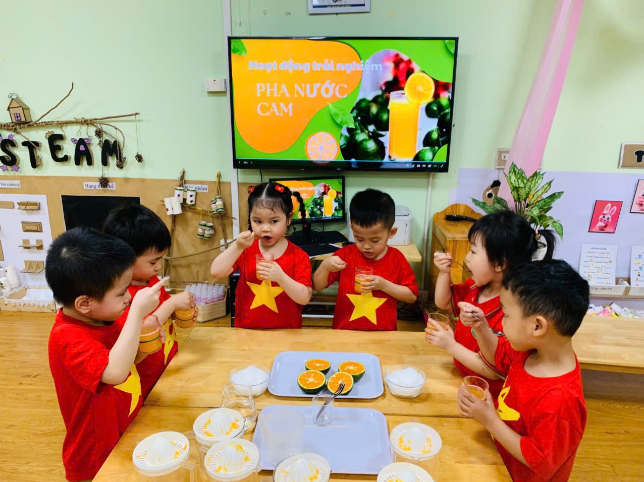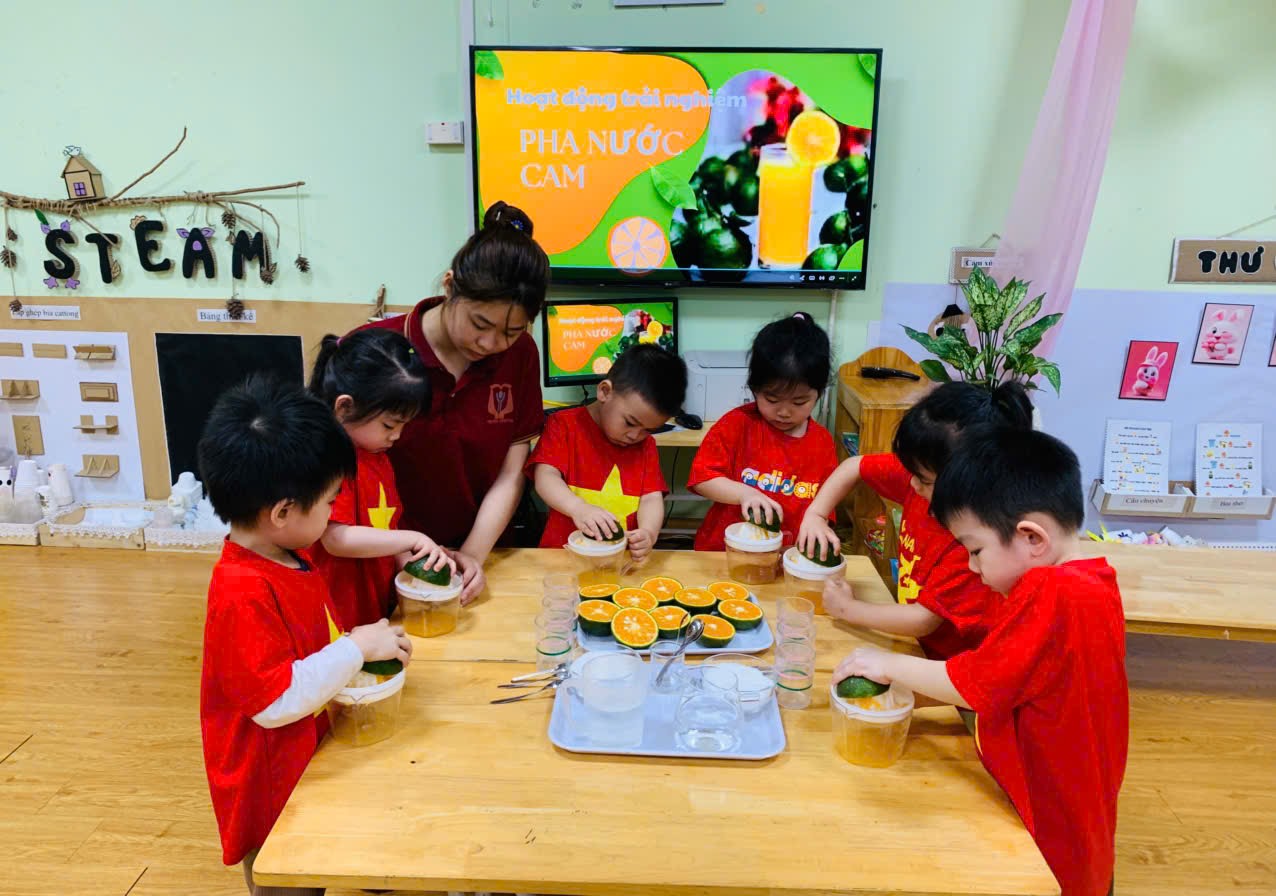 Từ những trải nghiệm giản dị như pha một ly nước cam, các bé đang từng bước trưởng thành – biết tự làm, biết cảm nhận và biết trân trọng những điều nhỏ bé quanh mình. Mỗi hoạt động là một bài học – mỗi nụ cười là một dấu ấn yêu thương! .