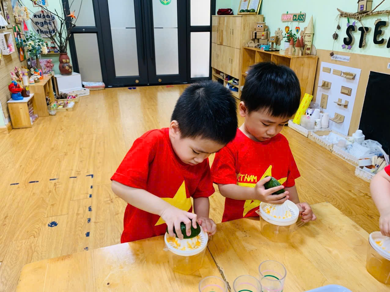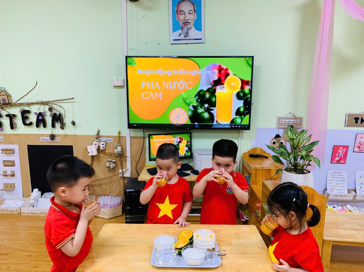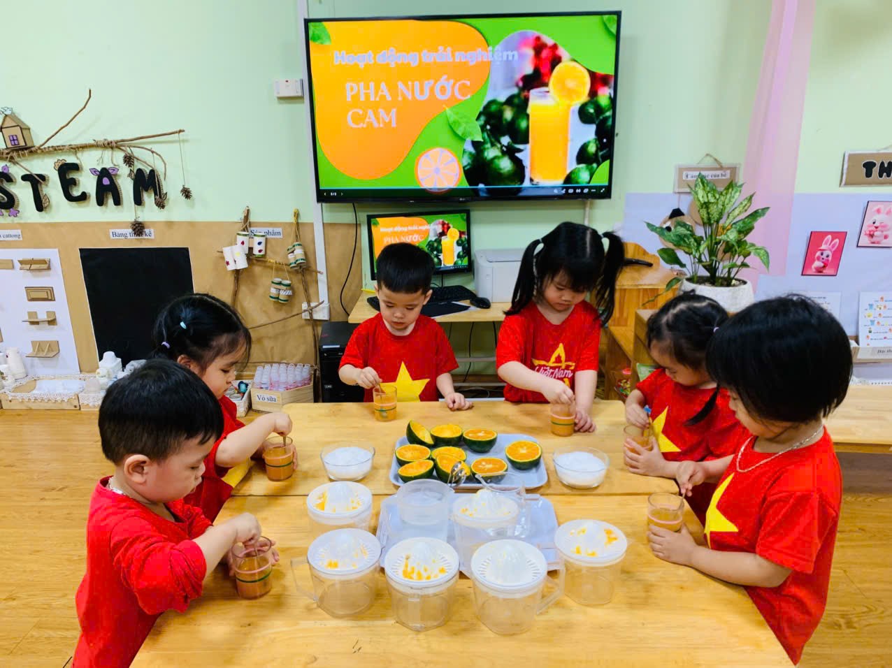 Từ những trải nghiệm giản dị như pha một ly nước cam, các bé đang từng bước trưởng thành – biết tự làm, biết cảm nhận và biết trân trọng những điều nhỏ bé quanh mình. Mỗi hoạt động là một bài học – mỗi nụ cười là một dấu ấn yêu thương! .