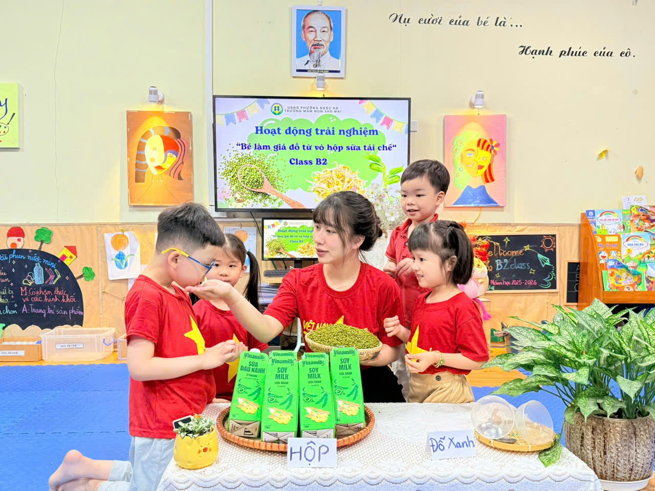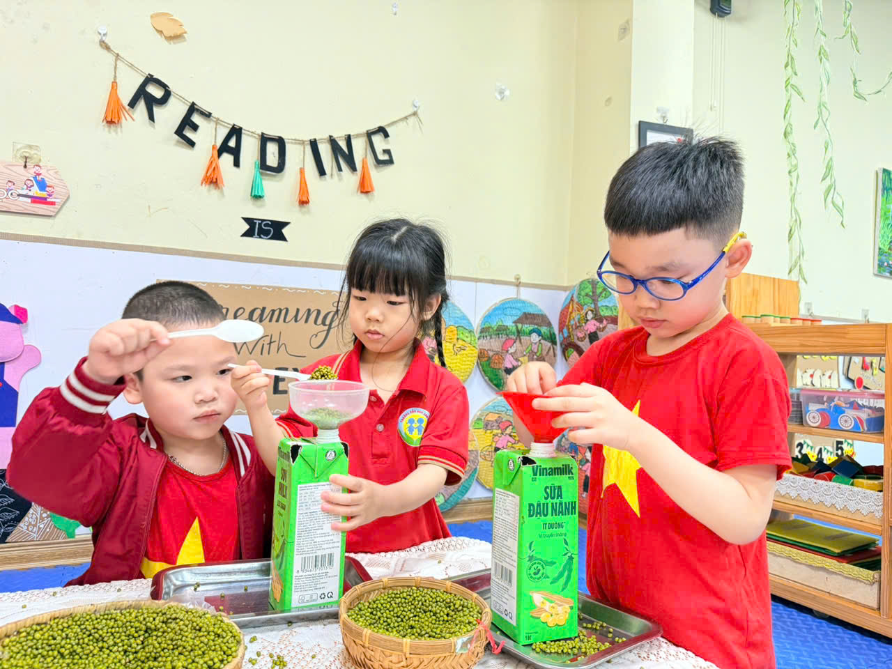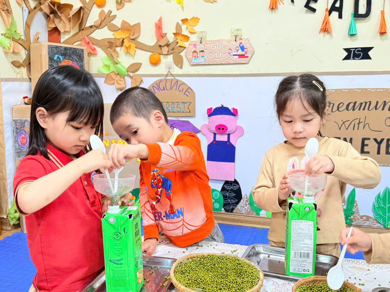 Gieo mầm xanh từ những điều nhỏ bé với hoạt động "Làm giá đỗ từ vỏ hộp sữa tái chế" cùng các bạn nhỏ lớp Mẫu giáo nhỡ B2