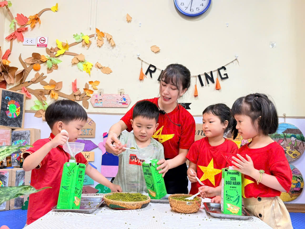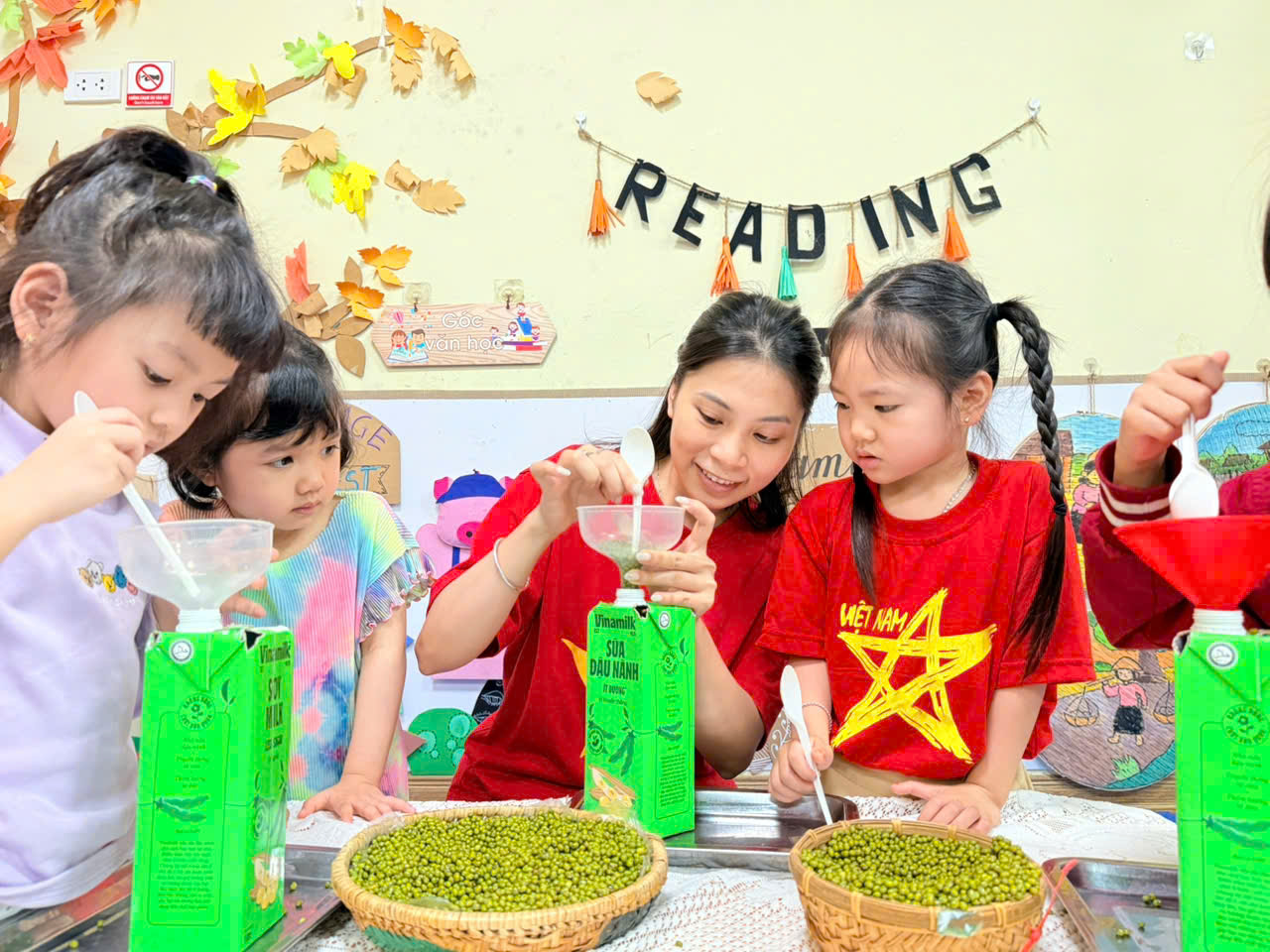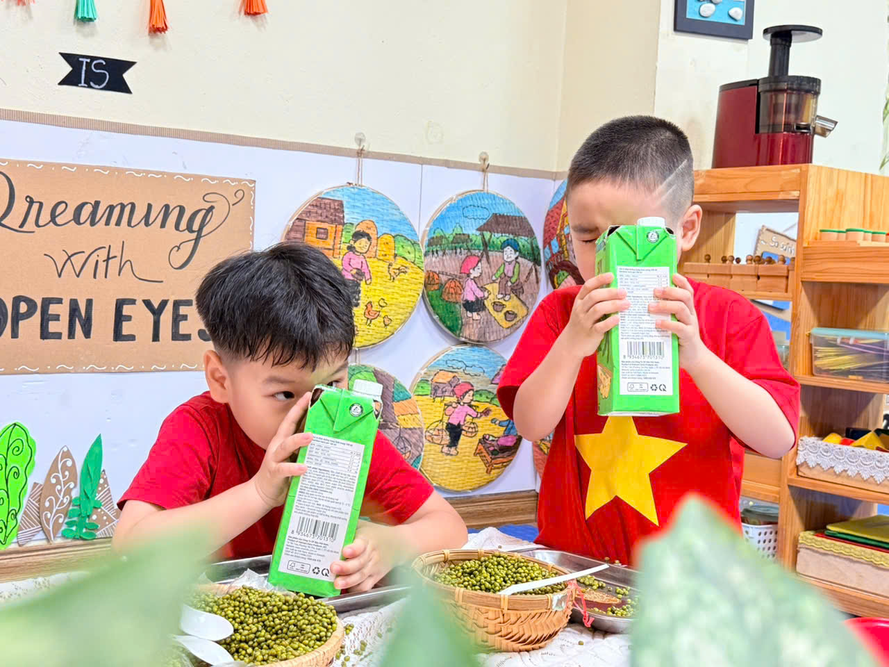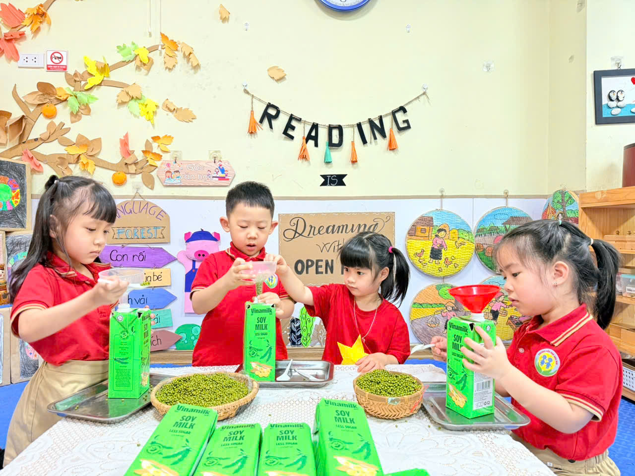 Gieo mầm xanh từ những điều nhỏ bé với hoạt động "Làm giá đỗ từ vỏ hộp sữa tái chế" cùng các bạn nhỏ lớp Mẫu giáo nhỡ B2