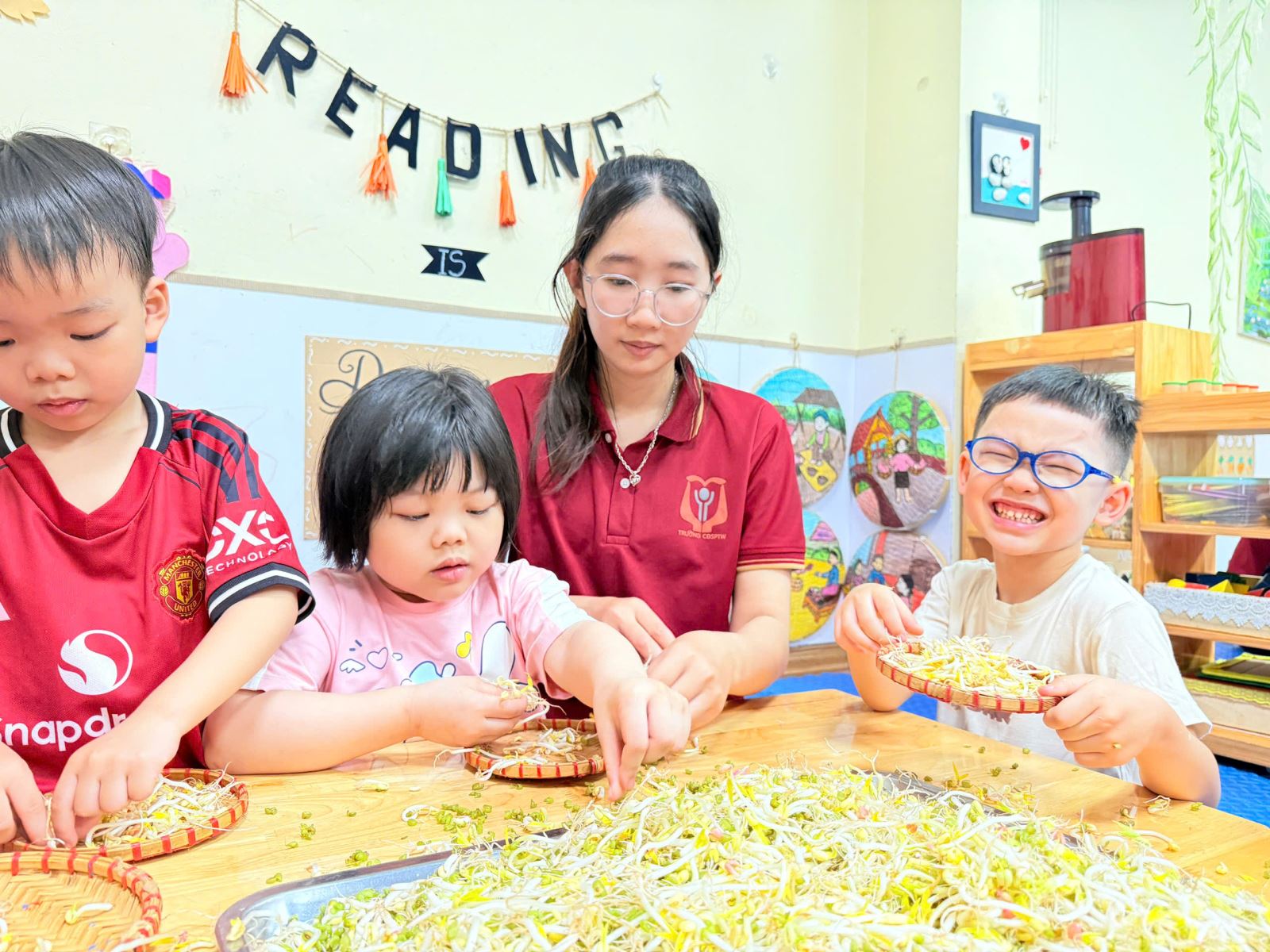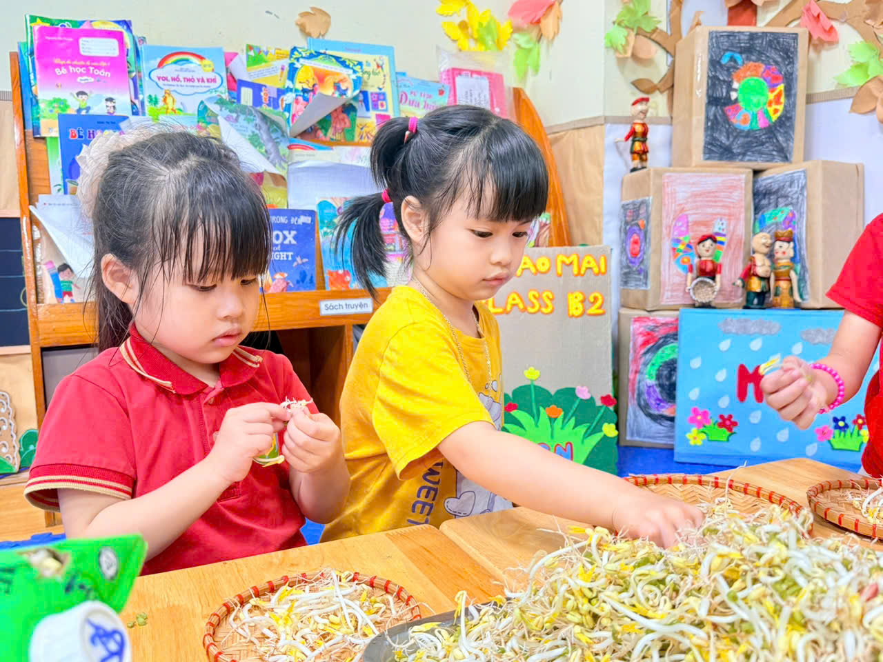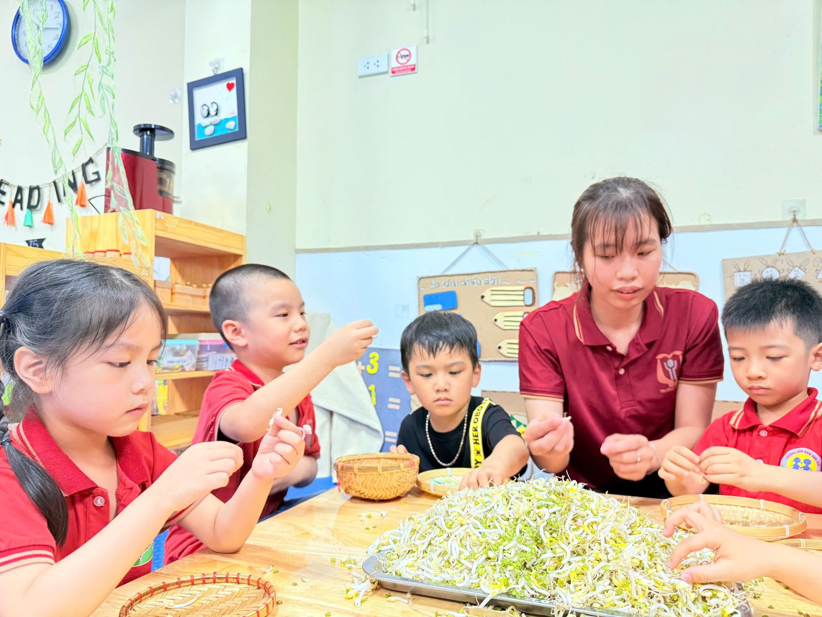 Những mầm giá trắng ngần, tươi xanh sau vài ngày chăm sóc chính là “trái ngọt” cho sự kiên trì và tinh thần học hỏi của các con. Niềm vui ánh lên trong đôi mắt trẻ thơ khi được tận tay thu hoạch thành quả của mình chính là minh chứng rõ nét nhất cho giá trị của những hoạt động trải nghiệm thực tế.